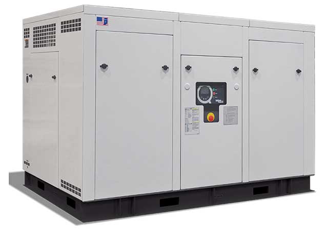 With advanced controls like a full-voltage magnetic starter, solenoid unload control, and inlet modulation, these compressors help reduce operating costs. Each unit includes an air pressure gauge, hour meter, and an oil separator tank that recycles oil back into the compressor. A 110-volt control transformer and built-in breakers make these compressors a reliable, efficient solution for compressed air needs.